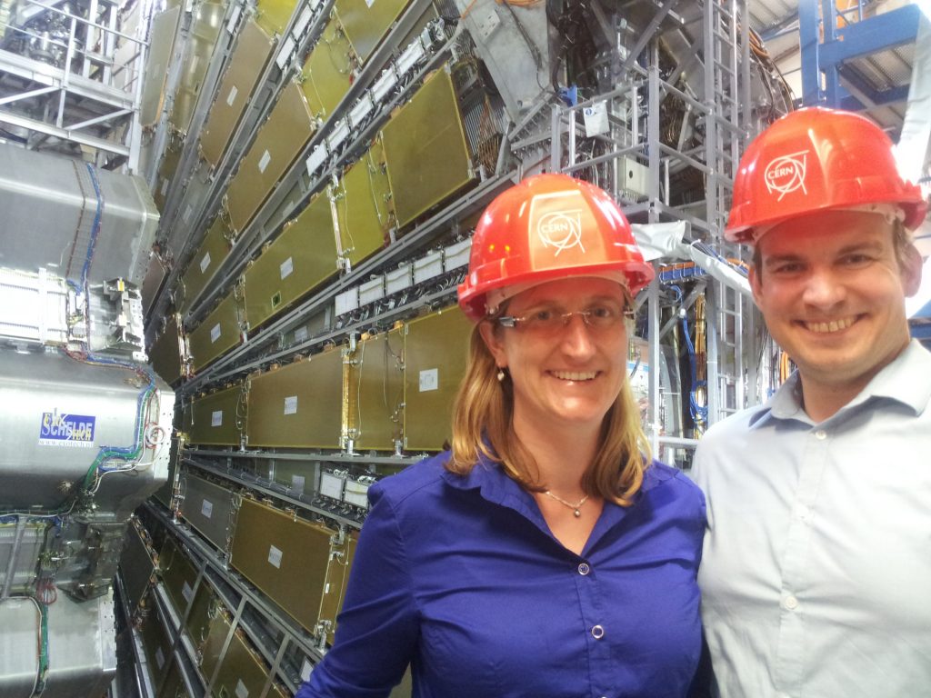 Jodi and Steve photographed in front of the ATLAS Experiment at CERN
